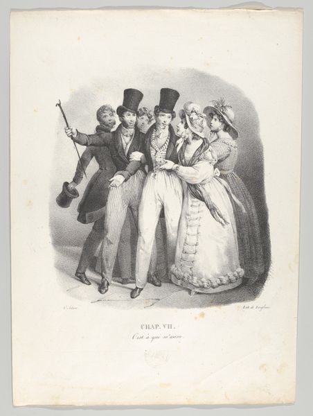 "The Neighbor," by J. J. Grandville, is an ink illustration on paper and is part of "The Complete Works of Béranger." Grandville was a French caricaturist known for his satirical illustrations, often critiquing the social and political norms of 19th-century France. In this piece, we observe a street encounter that exposes class distinctions, and gender roles. A well-dressed man in a top hat and riding boots, accompanied by a woman, engages with a stout figure in an apron. This interaction offers a glimpse into the negotiation of social boundaries. The artwork reveals a society deeply structured by visible signs of wealth and status. The woman in the background reminds us of the limited presence of women in the public sphere. Grandville captures a moment of social interplay with a sharp eye for detail. He invites us to reflect on the often unspoken rules that govern our interactions. The charm of the piece lies in its ability to distill complex social dynamics into a single, telling image.