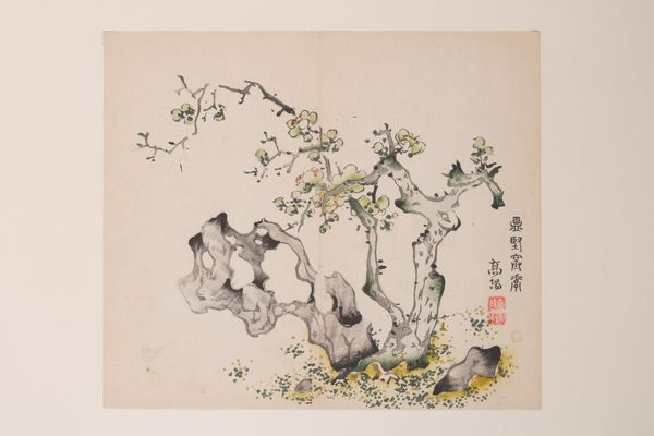 Zhang Zongcang created this ink on paper, miniature landscape sometime between 1686 and 1756. The monochromatic palette encourages us to focus on the formal qualities of the work: its lines, textures, and composition. Notice how Zhang uses varied brushstrokes to differentiate between the rock and bamboo. The rock is rendered with short, dense strokes that build up a sense of mass and volume. In contrast, the bamboo is depicted with fluid, calligraphic lines, conveying its flexibility and lightness. The composition is carefully balanced, with the solid form of the rock anchoring the left side and the delicate bamboo extending towards the right, creating a sense of depth and movement within the confined space. Consider how the artist used the stark white of the paper to delineate shapes and to create an atmospheric perspective. The visual structure of the artwork encourages viewers to engage with the natural world through a refined artistic lens.
