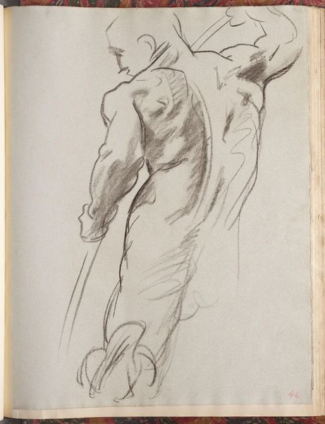 Curator: This is John Singer Sargent's "Study for Second Angel from Left, 'Israel and the Law,' Boston Public Library," housed here at the Harvard Art Museums. Editor: Raw energy! Look at the charcoal strokes, so quick and assured. You can almost feel the artist circling the figure, trying to capture that fleeting gesture. Curator: Absolutely. It's fascinating to observe how Sargent uses line weight and shadow to create a sense of volume and movement, a crucial formal element. Editor: I see it as a testament to Sargent's skill in handling materials. He's pushing the charcoal, exploiting its potential for both delicate shading and bold marks. You can tell he's exploring the physicality of art-making. Curator: Indeed, his mastery of technique serves the larger composition, giving the figure a dynamic pose within his mural design. Editor: And the study itself becomes a valuable record of the process of creating art, of working through ideas and the labor involved. Curator: A captivating piece to analyze from either angle, wouldn't you agree? Editor: Agreed. It’s intriguing to consider it from both perspectives, formal and material.