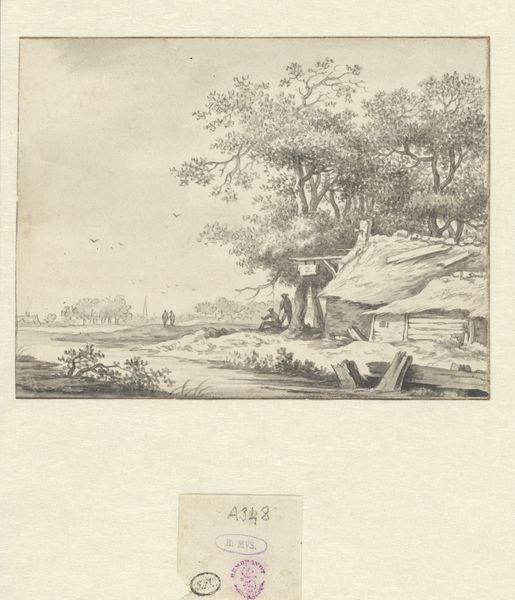 Editor: So, this is Antoine Pierre Mongin's "View of the Park at Versailles: Fishing in Pond Near Grove of Trees," date unknown, made with ink, graphite, and chalk on paper. It strikes me as rather dreamlike and ephemeral, almost like a memory fading at the edges. What stands out to you? Curator: It’s interesting you say that about memory. Notice the sphinx presiding over the scene. Consider the layered symbolism: in ancient Egypt, the sphinx guarded temples and tombs, representations of wisdom and secrets of the afterlife. Here, within the manicured, artificial landscape of Versailles, what is being guarded? Is it the secrets of the aristocracy, the illusions of their power? The idealized view of nature carefully constructed to reflect their status? Editor: I hadn't thought about the sphinx that way. It just seemed like decoration to me. So, the image itself becomes a symbol, representing more than just a pretty scene. But what about the grid? It is super imposed on the sketch? Curator: Yes, that grid is fascinating. Think of the act of measuring, quantifying. Doesn't it jar against the loose, almost romantic quality of the scene itself? Versailles was a testament to man's control over nature, this is not natural wild landscape after all, is it. That grid enforces that control and rational thought. The attempt to classify and conquer the untamable or organic and emotional. Editor: I see, the grid is another layer of constructed meaning, a sort of… attempt at rationalizing the beauty. I was too focused on the landscape! Thanks, I’m definitely seeing this piece in a new light now. Curator: Indeed. These visual layers give it depth, don’t they?