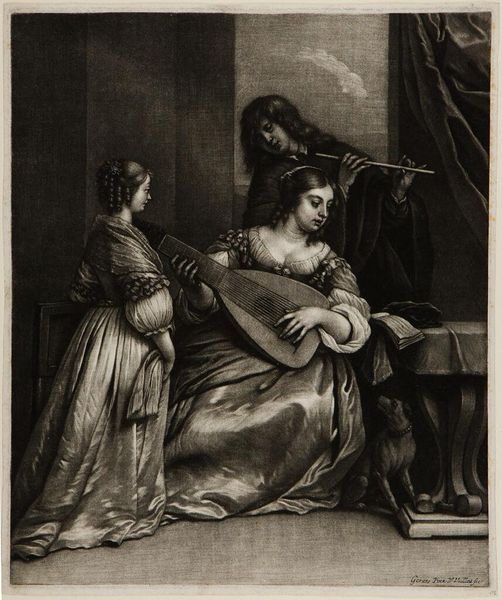This print, "Young Woman Selling Game" was made by Jacob Gole in the late 17th or early 18th century and is currently at the Rijksmuseum. The scene, rendered in detailed monochrome, presents a negotiation over hunted game, with both human figures centrally positioned and carefully lit. The composition is carefully arranged to guide the viewer's eye across the display of animals. Gole’s print uses familiar semiotic codes through its representation of commerce and domesticity. The structured composition, with its emphasis on visual balance between the figures and the game, functions as a commentary on the prevailing social norms. The symbolism of the game, combined with the interaction between the figures, hints at the underlying economic and social exchanges that define their relationship. Notice the textures achieved through engraving. The contrast between the smooth skin of the figures and the rough feathers and fur of the game, highlights Gole’s mastery and invites us to consider the complex interplay of nature, culture, and commerce.
