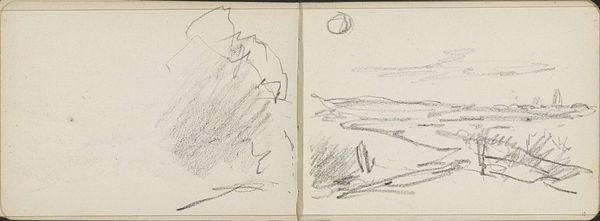 Curator: This is "Paardenkar op een pad en een hut," which roughly translates to "Horse cart on a path and a hut," by Willem Cornelis Rip. It's likely from between 1866 and 1922, and we see it rendered in pencil. Editor: Immediately, I am struck by how skeletal it feels. Both the horse cart and the hut on the right side feel fragile, almost ghost-like, as though they're fading from memory. Curator: I see what you mean. Perhaps Rip was trying to capture the fleeting nature of a memory, like a quick sketch to hold onto something before it disappears. A path and a humble hut represent so many people’s homeplace, and horses are symbols of travel but also agricultural labor and the common life. Editor: Right. The image seems to grapple with labor, class, and landscape. Carts were essential for moving goods but were also indicative of a rural lifestyle in tension with burgeoning urban spaces. It evokes a time of significant social and economic transition. Curator: And you're speaking about it being drawn, there's a feeling of impermanence because it is simply rendered in pencil, like something quick in a sketchbook— it captures that moment and preserves that type of symbolic cultural representation as a result. The choice of subject – a simple cart, a humble dwelling—resonates, particularly because of how they function symbolically in a visual shorthand, to use your phrasing. Editor: Indeed. This work highlights the transient nature of existence for marginalized groups in society as the world began shifting with more industrialized technology. What once felt like a given became ephemeral, and maybe, here, even traumatic. What stories do we lose when a way of life vanishes, and is memorialized with humble graphite and paper? Curator: Well, seeing these symbols, the home, the journey… it evokes the universal need for security, movement and purpose— elements that remain poignant across temporal shifts. The simple style draws our attention to the fact that at their core these symbols are what constitute society, but it may just take some art and insight to expose them as much. Editor: Exactly. I see it as a powerful reminder of the everyday realities that often get overlooked. We must stay grounded and never lose our human roots in even the smallest of gestures of representation.