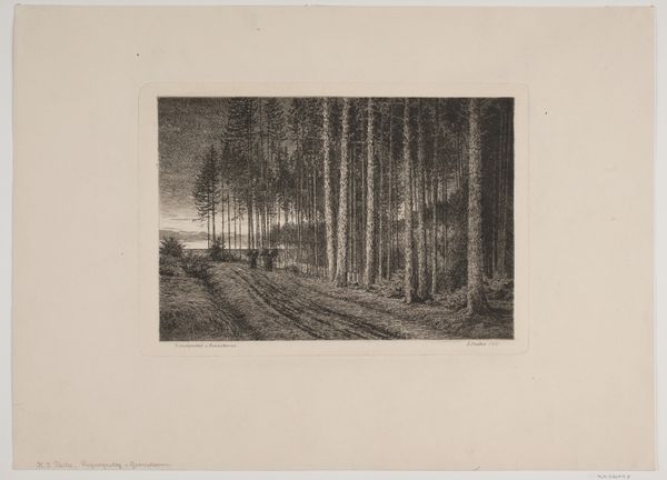 Hendrik-Dirk Kruseman Van Elten created 'De Dobbe-Gelle' with etching. The composition is immediately striking, characterized by a symmetrical arrangement of tall, slender trees that frame a central water feature, creating a strong sense of depth and perspective. The precise linear work evokes a contemplative mood, inviting the viewer to step into the tranquil scene. Here, the artist employs a careful balance of light and shadow to define the forms of the trees and the subtle reflections on the water’s surface, which underscores a connection between the artistic and the philosophical, suggesting a dialogue between the concrete and the ethereal. The structure of the piece might be read through a semiotic lens, where each element functions as a sign, contributing to a larger narrative. Ultimately, the artwork does not merely represent a landscape, but presents a space for the viewer to contemplate nature's complex order.