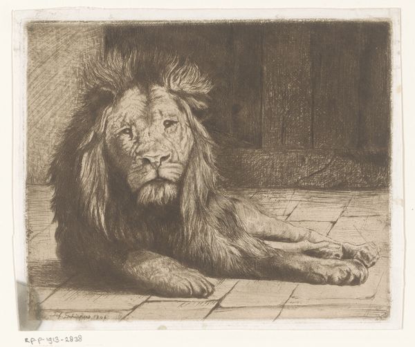 Editor: Here we have Howard Weld’s "Circus Wagon Lion," made around 1937 using pencil and charcoal. The lion appears proud, maybe even a bit fierce. What’s your take on this striking drawing? Curator: Oh, my dear, this piece roars with quiet dignity, doesn't it? The artist really captures the strength but also the vulnerability of a creature removed from its natural domain. Imagine him there, a king dethroned, perched atop a garishly painted wagon. Does the slight stiffness in his posture betray a yearning for the savannah? Editor: That’s a perspective I hadn't considered – his yearning! It feels like the artist captured a moment of reflection, perhaps? Curator: Absolutely. There’s a narrative whispered within those charcoal lines. The muted tones speak volumes, hinting at a past grandeur now…well, somewhat faded, like a vintage circus poster. Notice how Weld contrasts the smooth planes of the body with the intricate details of the mane, giving it a regal, almost theatrical quality. Don’t you think there's a bittersweet humor in depicting this creature in such a manner? Editor: Yes, now that you mention it, there's definitely a humorous quality! It seems a world away from the majestic beast in the wild. It's interesting how much one can read into a seemingly straightforward image. Curator: Precisely! And that's the joy of art, isn't it? To find echoes of ourselves, of history, even of faded dreams in these captured moments. It makes one ponder on our own gilded cages and how we try to roar still. Editor: Thanks for sharing your insights. I definitely have a new appreciation for this drawing.