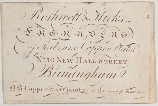 C. Cole made this trade card for Emden & Co, picture dealers, at an unknown date in the 1800s. Trade cards like this offer us a glimpse into the world of commerce and consumption in 19th century London. Emden & Co, located on the Strand, were not just picture dealers, but also importers of 'French and German fancy goods, alabaster figures &c'. This suggests a market for continental European luxury items among the British middle and upper classes. Notice the phrase 'Pictures cleaned, lined, & restored' in the top left, hinting at the emergence of art restoration as a specialized service and growing art market. The card’s design, with its elaborate script, also speaks to the importance of visual appeal in attracting customers. The Metropolitan Museum, as an institution dedicated to preserving and interpreting art, provides a context for us to understand the historical significance of this everyday object. By studying trade cards and other ephemera, alongside more traditional art historical sources, we can gain a richer understanding of the social and cultural world in which art was made, bought, and sold.