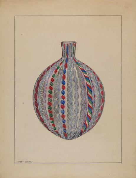 Al Curry rendered this terracotta wine bottle with watercolor, sometime between 1855 and 1995. Notice how the vessel swells, pregnant with possibility, and tapers to a narrow neck. This shape echoes the ancient amphora, vessels used across cultures to store not just wine, but also oil, grain, and even water, the very elixir of life. The bulbous form resonates with symbols of fertility and abundance. Think of the cornucopia, overflowing with the bounty of harvest, or the vessels depicted in Minoan art, ritually filled and carried in processions. These are not mere containers, but potent emblems of sustenance and vitality. The bottle's surface, marked with subtle lines and warm hues, evokes the earth from which it was formed. This humble object transcends its utilitarian purpose, inviting us to consider the timeless connection between humanity and the earth, as well as our ongoing dance with creation and transformation.