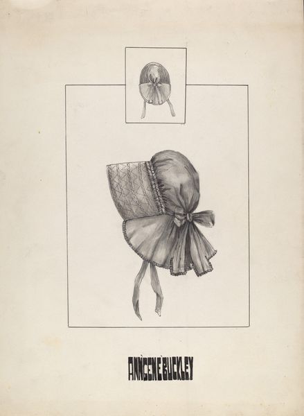 Editor: This is a pencil drawing called "Bonnet" by Bessie Forman, made sometime between 1935 and 1942. It's just a sketch on paper, and for some reason, I find it oddly endearing, like a whisper of a bygone era. What do you see in this piece? Curator: Endearing is the perfect word! It’s got this… innocent quality, doesn’t it? It makes me think about how even the simplest things, like a bonnet, held significance. Imagine a woman carefully selecting or even crafting one like this! The texture created with the pencil strokes gives such detail to a basic garment. It's less about high art and more about the everyday made extraordinary. Editor: I also noticed the two smaller sketches of the bonnet alongside the larger one. Curator: Yes! I see them as echoey thoughts, further explorations of form. Aren't they sweet, like little ghosts of bonnets past? To me, Forman wasn’t just depicting an object but really investigating how shape and form intersect. The artist seems to ask the question: “how do I take something simple and imbue it with quiet meaning?” Editor: That makes me appreciate the simplicity even more. It's not just a bonnet; it’s an investigation. I initially saw a historical relic but I think I see a study of artistic intention too. Curator: Precisely! Sometimes, the quietest art speaks volumes. A fleeting, gentle touch on paper reveals its own hidden significance and transforms our perspectives!