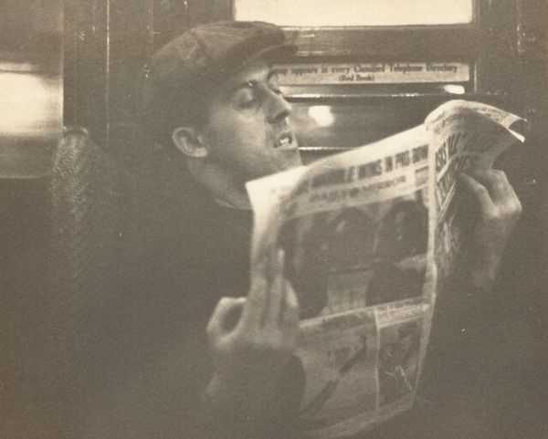 Curator: Let's dive into Sid Grossman’s 1939 gelatin silver print, "Shoeshine Boys, Harlem." It's one of those pieces that hums with unspoken stories. Editor: My first impression? It's all contained anxiety. The central boy's wide eyes—there's a tension held in the grey scale itself, almost like you can feel the city’s breathlessness on a hot summer day. Curator: Absolutely. For me, it’s about more than just heat, though. The composition directs my eye in ways that highlight the boys' working conditions as a shared economic struggle against the backdrop of, what appear to be bolts of vibrant fabrics and carpets. The boys’ hopeful postures set against such weighty shadows cast by the storefront makes this a very evocative and powerful visual statement. Editor: Yes, and did you see how their clothing practically melts into the environment? Notice the textural richness in the boy's well-worn socks and patched shoes—they tell a very silent but palpable narrative. Curator: It makes you consider their agency, doesn’t it? They aren’t passive subjects here. Grossman captures their energy, the work ethic of the community; but the reality is that in 1939 many lived through desperate poverty after the great depression. Editor: The geometry of light and shadow really underscores the scene. See how the lines converge and diverge, almost mimicking the divergent paths life may lead the youths to? It's brilliant, structurally, how Grossman uses stark contrasts to talk about very harsh realities. Curator: Very true; and thinking about that convergence, for a brief moment they are sharing this burden. Their shared work ethic seems like a light shining amidst difficult surroundings. Editor: In that moment captured, one could almost perceive a hopeful undertone to their grim lives. But for all its complexities, one may also be touched simply by the enduring spirits, as represented by the young men on the foreground, in their everyday urban context. Curator: It's images like these that remind me why photography still resonates—how it can crystallize both the grit and grace of life with an unwavering humanity. Editor: Indeed, and leave us forever thinking, hoping, fearing alongside its subjects.