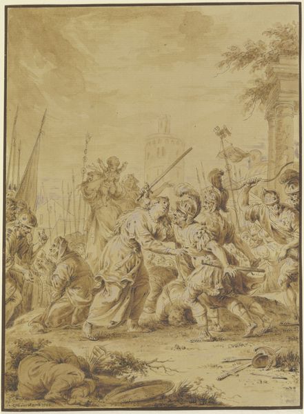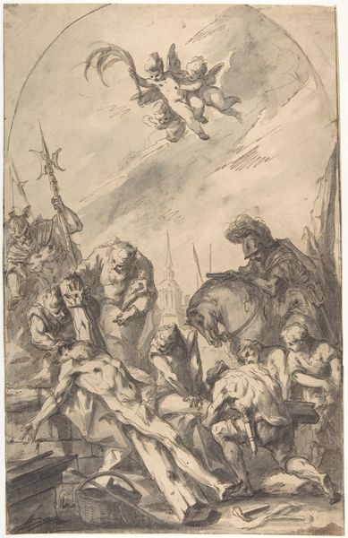 This drawing, Martyrdom of a Saint, was made by Gaspare Diziani, probably in Venice, using pen and ink and wash on paper. The immediacy of the washes and the artist’s hand is readily apparent, but its social context is less obvious. Diziani’s quick and fluid marks were not made from life but composed in the studio. In contrast to the brutal act of execution, the materiality is delicate. The sepia tones and transparent washes give this piece an ethereal feeling. But don’t be fooled. This drawing represents real labor. Diziani and his workshop would make drawings like this in large quantities for the art market. They were exercises in his skills as a painter, but also objects of commerce that sustained his studio. By appreciating the labor involved in the artistic process, we expand traditional art history, challenging the distinctions between high art and craft.