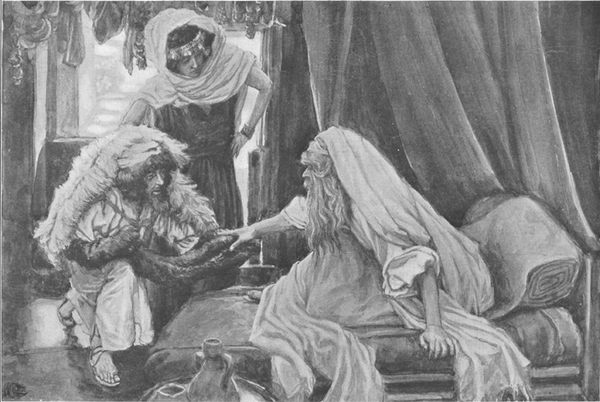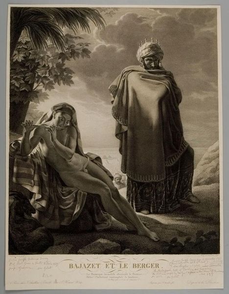 Editor: Here we have "Samson and Delilah," an engraving by Gustave Dore. It strikes me as a very dramatic rendering of this well-known biblical scene. What cultural meanings do you see embodied here? Curator: Note how Dore situates this moment of betrayal within an almost theatrical space. The heavy drapes, the shadowed room… it's ripe with psychological tension. Consider the weight of hair in this narrative— Samson's hair is not merely a physical attribute, but a potent symbol, holding both divine promise and a deeply rooted cultural connection to masculinity and power. Editor: So the cutting of the hair is more than just a physical act; it’s a symbolic castration, if you will? Curator: Precisely. Think of other instances where hair plays a symbolic role in cultural narratives - ritualistic head-shaving or long unshorn locks. These physical symbols resonate with cultural memories, touching upon deeper psychological fears of loss, emasculation, and the vulnerability that comes with revealing one's secrets. Delilah, with her veiled head and calculating gaze, represents the archetypal temptress, doesn't she? Editor: Yes, there's almost a predator/prey dynamic at play. I hadn’t really considered all of the implications of the hair… Curator: It is a powerful image, isn't it? And Dore’s romantic style certainly amplified that cultural tension. What resonates with you now, seeing it with those associations? Editor: I'm struck by how symbols in art continue to accumulate layers of meaning over time. The drama becomes deeper with each added cultural context.