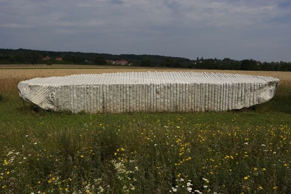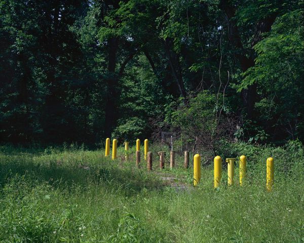 Robert Grosvenor made this Untitled sculpture out of painted metal. That horizontal beam of yellow cuts across the green, like a thought interrupting a daydream. Grosvenor is so good with colour, its all about relationships, and that vivid yellow against the pastoral scene just makes you stop and think. The texture, the flatness of the planes, the way the sunlight reflects off the surface, it all points to a real sensitivity to materials. The angle is so striking - that bar pointing skyward. You could look at so many of his works, from the 60's to now, and see him working with similar ideas, the contrast between industrial materials and more fluid forms. But it reminds me of Sol LeWitt's structures, that same interest in geometry and the grid. And like LeWitt, Grosvenor's work invites us to see the world in a new way, one that is both logical and intuitive, formal and completely open to interpretation.
