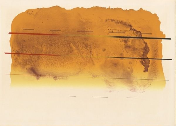 Editor: So, this is Oleg Holosiy's "Airplane On The Runway" from 1992, an oil painting. It's so simple, yet there's a certain melancholic atmosphere to it. What catches your eye about this work? Curator: The image's power comes, in part, from its context. Holosiy painted this only a year after the dissolution of the Soviet Union. Aviation, particularly air travel, was, at that time, seen as symbol of national prestige and connectivity in an increasingly globalized world. Does that make sense? Editor: It does. So, the painting's perspective – looking directly at the airplane as it prepares to take off – it's almost confrontational, right? Curator: Precisely. It poses the question: Is this symbol about to disappear? Will Ukraine, a newly independent nation, thrive and truly connect with the world? How will globalization play out for this emerging country, as it tries to shed its post-Soviet identity? Considering all of this, what emotions do you think this evokes for the viewer? Editor: Hope, perhaps, but tinged with anxiety. The blurring of the airplane against this fiery sunset or sunrise, also adds this incredible uncertain quality to the piece. Curator: Agreed. And Holosiy's technique here, blurring realism almost to abstraction, could speak to this political uncertainty but the picture becomes more about universal issues of place and belonging. The fact that he uses oil, which also has strong symbolic associations, underscores this interpretation. Holosiy created a symbol for national aspiration in an age of global transformation. Editor: This has given me a whole new perspective! It’s incredible to consider how Holosiy's painting really captures such a pivotal moment. Curator: It does. Analyzing art like this makes me realize how important it is to reflect upon societal issues, how they are represented, and to bring that insight to bear on our own understanding of history.