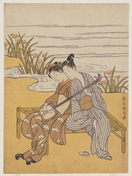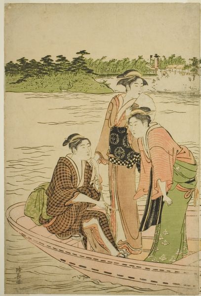 Curator: This watercolor illustration, “Journal des Dames et des Modes: Fashion News” from 1913 presents two figures in conversation, one seated and the other standing. The rendering offers an interesting visual encounter. What is your immediate impression? Editor: I'm drawn to the textures, suggested as they are. The polka dots on the seated woman’s dress, the checked pattern of the girl’s dress; the treatment of these ordinary, mass-produced patterns in the service of high fashion is fascinating. The paper, the pen strokes – it all feels quite tangible, doesn’t it? Curator: Absolutely. Beyond the visible rendering, let’s examine how this fashion plate participated in constructing a cultural ideal, or, in other words, what intersectional issues are we dealing with here? It clearly promotes a specific image of women's fashion in early 20th century Paris but its message reflects power structures inherent in society. This creates a rather class-specific fantasy. Editor: Right, the materials reflect this, of course. The original publication process allowed for mass distribution of aspirational imagery, playing on both accessibility and exclusivity. The relatively simple pen and watercolor strokes could be replicated and consumed widely. How fascinating to explore the material realities of desire and dissemination. Curator: And that extends beyond simple representation. What does it mean to display and perform elite feminity at the nexus of colonial powers? The fashion is one dimension of material display of cultural identity but the bodies, the activities suggested here indicate ways women can act as economic agents that mirror a form of societal authority. Editor: The layering here really works. This illustration utilizes a printmaking background which could produce copies on paper as a method for consumption for a larger group to access information about social life. It allowed for the visualization and understanding of cultural norms. I see labor implicit within this print. The artist made use of pen strokes and watercolor washes, making design decisions, laboring at their table, allowing viewers of the illustration an understanding of these fashionable forms that create our social reality. Curator: Thank you. Reflecting on this piece and fashion illustration in general really forces a reconsideration about social forces at play that shape norms surrounding the construction and visual representation of feminine identities in turn of the century Paris. Editor: I concur; it provides insight on consumer society that would encourage an investment into oneself while taking advantage of the latest trends and cultural capital.