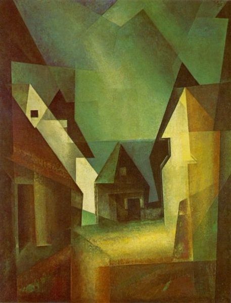 Dorrit Black created this oil painting of a street in Normandy, France. Black's adoption of cubist techniques, such as geometric forms and fractured perspectives, speaks to the progressive artistic circles she moved in. Made at a time of rapid social and artistic change, 'La Grand Rue, Normande' shows us how Australian artists engaged with European modernism, adapting it to their own experiences and perspectives. We might ask, how did art institutions and education shape Black's artistic development? What role did travel play in exposing artists to new ideas and movements? Further research into Black's life, her artistic training, and the cultural context of the interwar period could reveal even more about the social and intellectual forces that shaped this painting.