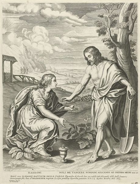 Curator: Here we have Eugène Delacroix’s “Hamlet and Horatio in the Cemetery,” an oil painting dating back to 1839. What's your initial response to it? Editor: It strikes me immediately as dramatic, and deliberately so. The sky is tumultuous, and the figures almost seem staged against that backdrop, lit to showcase Hamlet’s pensive mood. I am wondering what kind of pigments did Delacroix choose for his palette? Curator: Well, let's think about the scene itself. This is Hamlet confronting mortality, a moment steeped in existential contemplation. The skull isn't just a prop; it is a potent symbol, laden with meanings of decay, loss, and the transient nature of existence, amplified by Delacroix's Romantic sensibilities. It speaks volumes about the human condition and collective memory. Editor: And what’s interesting, thinking of pigments, is how those emotional and philosophical weights are literally built, layer by layer, using earth pigments, minerals. Considering Delacroix was working in a period increasingly concerned with the industrial production, there is a stark contrast between materials extracted by labor and the “genius” he put in it. How did this making process impact the final image? Curator: I agree, that is where Delacroix's technique serves his vision, not just raw emotions. He harnesses those raw materials to conjure specific feelings. Hamlet is always pondering what's beyond life; Delacroix seems interested in illustrating that moment of profound and deep connection between man and life. Editor: But look how roughly he builds up the earth underfoot. We feel the grit and density through his handling of paint. It almost anchors the sublime emotions in a very real, tangible place, with the manual labour embedded into each layer. The context where paintings such as “Hamlet and Horatio in the Cemetery” existed highlights those elements in Delacroix's creation. Curator: I can see how materiality can illuminate different nuances in the painting now, how it intertwines physical and intellectual labor within these oil paints, giving additional meaning to symbols and drama! Editor: Exactly, there's a dialectic between the intellectual subject and the means of making it, right there on the canvas. Curator: It truly underscores the layers of interpretation embedded within. Editor: Yes, every little bit of the painting provides us another hint on this interesting discussion, how Hamlet ponders with what humans do and how that reflects in themselves.