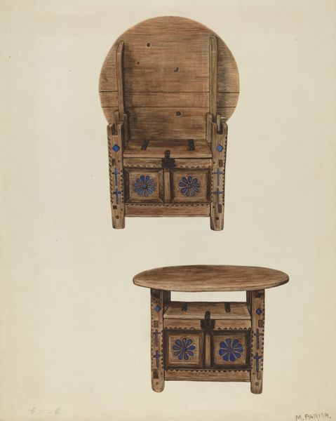 Frank Wenger's 'Writing or Sewing Table' gives us a glimpse into domestic life through the depiction of household furniture. Note the claw-and-ball foot of the table. This motif, derived from Chinese art, often symbolizes mastery over material possessions. Its migration to the West is telling; it reflects a desire to domesticate and control nature, transforming raw power into something refined and manageable. We can look at how it appears on, for example, Chippendale furniture in 18th-century England, symbolizing wealth and status. Such adaptations speak to our collective memory—how we borrow, adapt, and imbue symbols with our own cultural anxieties and aspirations. This claw-and-ball foot, therefore, is not just a decorative element but a potent psychological symbol, revealing our complex relationship with power, nature, and the objects we surround ourselves with. A cultural artifact speaks volumes about the human condition across time.