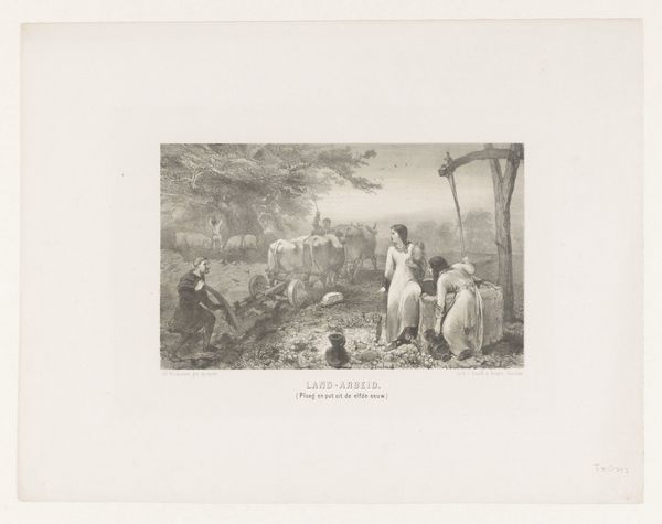 Victor Adam created this print called Haven van Blé, or Port au Blé, in the 19th century. As an artist working in France, Adam was deeply influenced by the social and economic transformations of his time. The print captures the bustling activity of a port, a crucial site for trade and labor in 19th-century Paris. The figures in the print tell stories of gendered labor. Predominantly male workers are engaged in the physically demanding task of loading and unloading goods. The presence of women, though less prominent, may speak to their roles in commerce and trade around the port. Adam’s portrayal of the working class emphasizes their collective effort. This print provides a window into the day-to-day lives of working people and invites us to reflect on the human cost of economic progress.
