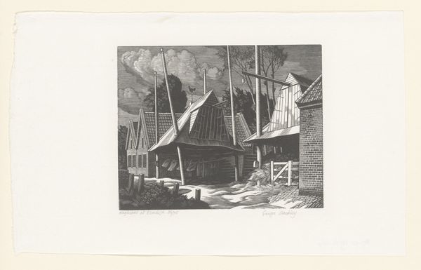 Stow Wengenroth made this lithograph called "Waterfront" sometime in the 20th century, conjuring a world with shades of gray. The beauty in this print lies in how Wengenroth coaxes so many tones from the lithographic stone, building a detailed world of tiny marks. Look at the dark sky, it feels heavy, right? You can sense the weather coming in off the water. Then notice the texture of the wood, the way the light catches on the boats. It makes me think of Whistler, someone else who was interested in the poetry of place, especially when it comes to dockyards and harbors. But Wengenroth brings his own sensibility to it, a kind of humble appreciation for the everyday. It reminds us that art isn't always about grand gestures; sometimes, it's about paying attention to the quiet corners of the world.