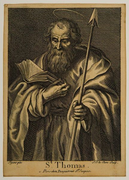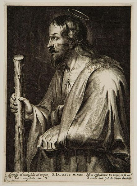 Editor: This is Nicolas Ryckemans' Saint Matthew, an engraving. I'm struck by the texture achieved with just lines – the cloak looks almost tactile. What can you tell me about how its creation informs its meaning? Curator: The engraving process itself is key. The artist's labor, meticulously carving lines into the metal plate, mirrors the dedication Saint Matthew embodied. The printmaking also allows for mass production and distribution, democratizing access to religious imagery and shaping its consumption. Editor: So, the very process of making it is part of the message. That's fascinating. Curator: Precisely. Thinking about the materials and methods opens up how we understand its cultural role, don't you think? Editor: Definitely. Considering the printmaking process really sheds new light on the work.