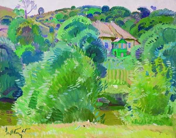 Curator: The piece we’re looking at is simply titled “Landscape,” a painting by Henri Matisse. The art world likes to categorize it as Fauvism— but really, what *is* it? Editor: At first glance, it strikes me as melancholic. Those brooding trees frame a building that almost feels swallowed by the scenery. It’s lovely but heavy. Curator: Heaviness, that's interesting. It’s the simplification that does it, isn’t it? Everything flattened and distilled into color and shape. No frills, just emotional truth. Or the closest Matisse could get to it. Editor: I agree; there’s a palpable flattening. We need to think about whose "emotional truth" gets centered, though. While Matisse was innovating formal artistic languages like fauvism and pushing beyond representation, we have to examine how his world, his experiences, shaped this expression. Who lived in that swallowed house, and what was their truth? Curator: Ah, always contextualizing, you are! I get it, but it also sort of ruins the joy. This wildness, those strokes… it's a visceral reaction to being *in* the world. I see him standing there with his easel, feeling that wind, squinting at the sun... Editor: But the "wind" he feels, the "sun" he sees – isn’t that a perspective of privilege, a luxury even? So many are just trying to survive, not aestheticizing it. When we view art, let’s look beyond our immediate experience. Who built that house, whose land is it sitting on? What power dynamics allowed Matisse the leisure to create this artwork? Curator: So, not just ‘joy’, but *whose* joy, whose story? I do see the weight of your points. It adds to the heaviness you noticed at first. Layers and layers, like those oil paints. Editor: Exactly. It’s not about canceling the artwork; it’s about amplifying voices often silenced. Let's look for narratives in those silences, behind those brushstrokes. Curator: Hmm, behind the joyous fauvism of “Landscape” there is a layered portrait. It is quite complicated.