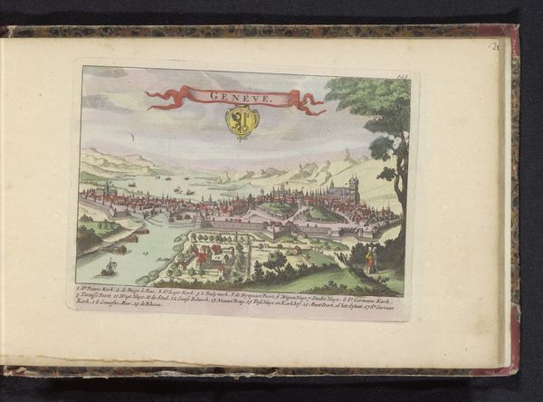 Curator: So, here we have a piece titled "Panorama van Abbeville in vogelvluchtperspectief." It's an engraving and print, made with pen and coloured pencil on paper, dating from sometime between 1596 and 1652. Editor: Wow, talk about seeing the world differently. This isn't just a cityscape; it's like they wanted to capture the idea of a city, not just what it looks like on the ground. Kinda has that god's-eye vibe, don't you think? Curator: Absolutely! The 'vogelvluchtperspectief' or bird's-eye view, was very popular during the Northern Renaissance. It's not just about realism, though the detail is impressive. There’s symbolic weight here. It showcases civic pride and perhaps even military strategic information. Abbeville presented as orderly and formidable. Editor: Formidable, yes, but also surprisingly... cozy? All those little houses crammed together. It’s like a human beehive. And look at those figures walking outside the walls; the whole scene is brimming with human energy, captured through pen work and drawing that pops. Curator: The perspective gives prominence to elements important to the city's identity: churches, civic buildings within those defensive walls. These are potent symbols of societal structure, of power, protection and piety. We're meant to understand Abbeville not just as a place but as an idea. Editor: But I can't help wondering how accurate it really is. The artist wasn’t using drones, after all! There’s a kind of imaginative reconstruction happening. A blend of observation, memory and sheer invention! It’s the mapmaker as poet, not just a surveyor. Curator: That's a fair point. It represents a collective vision, a desired image. The map becomes a statement of what the city wants to project – its order, wealth, and influence, solidified and spread. It also plays into a long lineage of mapping as a form of visual propaganda. Editor: Well, seeing it that way, it feels less like an historical record and more like a collective dream frozen in ink and paper. Kind of changes how I see these old cityscapes. Curator: Precisely. It invites us to think critically about how we depict places, and how those depictions reflect deeper aspirations. Editor: I guess, in a way, it also offers a look into how we, as humans, seek control and try to make sense of a complex world using the power of perspective. Thanks! Curator: You've touched on such a vital point; perspective isn't just about seeing; it is always also about understanding and power. Thank you.