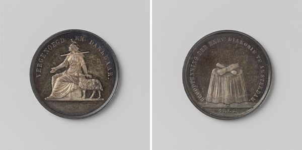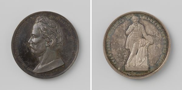 This bronze medal, "Overlijden van de schilder Jan Willem Pieneman," was created by Johan Philip van der Kellen to commemorate the death of painter Jan Willem Pieneman. The work reflects the societal norms of the 19th century Netherlands, particularly the public mourning of prominent figures. Pieneman was known for his history paintings, many of which depicted scenes of national pride and military achievements. The imagery on the medal reflects the cultural values and artistic conventions of the time. The figure on the reverse appears to represent grief, and is presented in line with classical allegorical traditions. Consider how commemorative objects such as this serve not only to remember individuals, but also to reinforce collective identities and values. How does this medal contribute to a sense of national identity and historical consciousness?