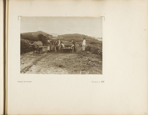 This photograph, titled "Two Soldiers in the Field" presents a landscape dominated by tall grass. The anonymous artist captured two soldiers standing amidst this dense vegetation, with distant mountains framing the horizon. The composition is striking. The overwhelming presence of the tall grass, rendered in detailed textures, suggests a terrain that obscures and perhaps entraps. This sea of grass challenges our conventional understanding of landscape as open and accessible. The two soldiers, seemingly lost within this environment, become signs of vulnerability. Their presence invites us to reflect on the relationship between humanity and nature. The use of monochromatic tones enhances the photograph's formal qualities, emphasizing tonal contrasts and textures. The play of light and shadow across the field evokes a sense of depth, pushing our gaze towards the horizon. This work invites continuous interpretation, prompting us to consider the relationship between individuals and the environments they inhabit.