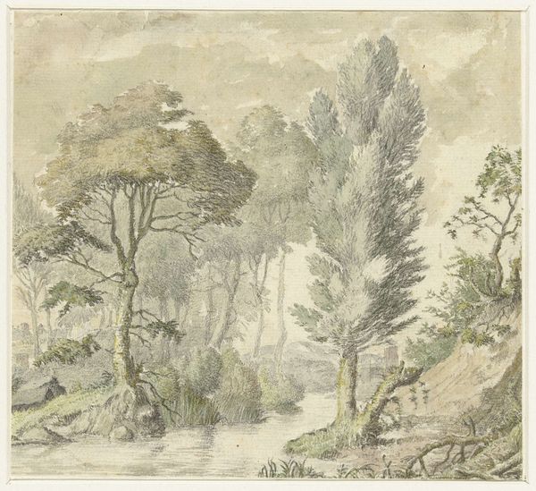 Editor: This is "Oystermouth Castle" by J. Martin of Canterbury. It looks like watercolor on paper, and the atmosphere feels so melancholy and evocative. What symbols stand out to you in this piece? Curator: The castle ruin, of course, dominates. What does a ruin signify? Often, loss, the passage of time, the fading of power. Note how it’s being overgrown. Does that suggest nature reclaiming what was once human dominion? Editor: I see what you mean. The muted colors add to that feeling of something fading away. Curator: Exactly. The artist is using visual language to speak about history, memory, and the inevitable decline of even the grandest structures. Editor: I hadn't considered the symbolism so deeply. Now it feels much more layered. Curator: Visual imagery is always more potent once we recognize what lingers in the memory of the symbol!