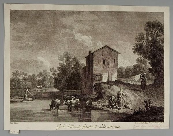 Editor: This is "Primary View of the Area of Neuchâtel in Switzerland" by Pierre Jean Duret. It's an etching, and I'm struck by how much texture Duret achieves with simple lines. What do you see in this piece? Curator: The etching reveals a focus on the means of production. The lines themselves, the physical act of carving into the plate, and the resulting prints distributed—all these speak to a specific type of labor and accessibility. Editor: Accessibility? How so? Curator: Etchings allowed for wider distribution than paintings. Think about the market for these images, who bought them, and how they circulated ideas about place and labor. What narratives are constructed around this landscape? Editor: I hadn't considered the social implications of printmaking itself as part of the art. Curator: Exactly. The materials and the methods become integral to understanding the work's cultural significance.