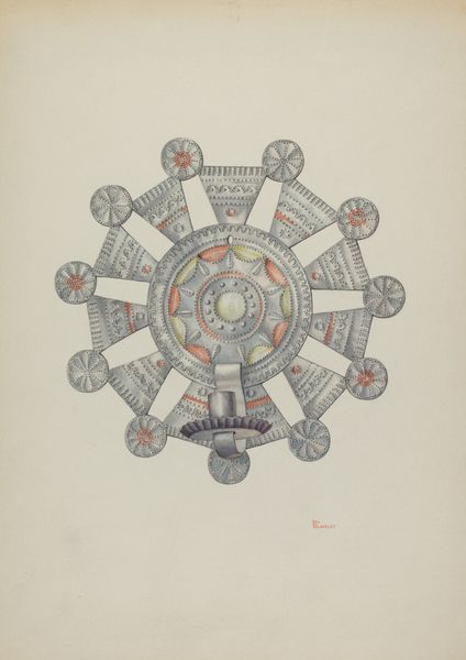 This drawing of a Candle Holder was made by Hal Blakeley, and I love the way the purple ink and watercolor describe light and shadow. It's like the object is glowing from within! Blakeley's approach really emphasizes the process of making; it’s not trying to trick us into thinking this is a photograph, it’s all about line and pattern. The texture of the paper peeks through, creating a sense of depth and transparency. Notice the details, the small, careful dots, the thin washes of color. These aren't just decorations; they're like little experiments, ways of seeing what the materials can do. I’m really drawn to the way the shadows have been built up with layers of ink, it gives the whole design a lift off the page, like a blueprint for a celestial object. This piece feels connected to the visionary drawings of Hilma af Klint, who also explored spiritual ideas through geometric forms. Ultimately, art invites us to see the world in new ways, embracing the mysterious and the unknown.
