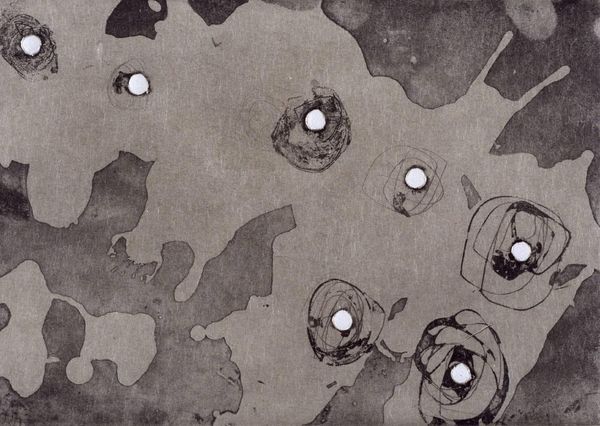 Editor: This is "5 Objects in Space" by Joe Tilson. It’s a rather dark print with everyday objects floating in what seems like outer space. What do you see in this piece? Curator: I see a commentary on consumerism, perhaps even a critique of the space race as a distraction from social inequalities on Earth. These mundane objects, divorced from their function, become relics in a vast, uncaring cosmos. What does "space" mean here? Is it freedom, or abandonment? Editor: I hadn't thought about it that way. So, it's not just about space exploration, but about what we value as a society? Curator: Precisely. Tilson's use of everyday objects challenges us to question their inherent worth and consider their role in shaping our identities and aspirations. It reveals how dominant ideologies are often embedded in the mundane. Editor: That's given me a lot to consider. I'll definitely look at it differently now. Curator: Excellent. Art invites us to question, to delve deeper into the narratives that shape our world.