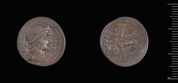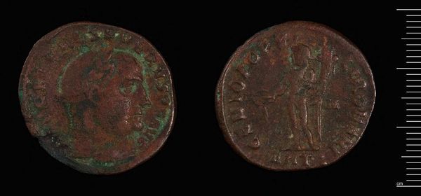 Curator: Here we have an Antoninianus of Probus. The coin provides us with insight into the reign and imagery of Emperor Probus. Editor: It’s amazing how much detail is captured, despite the coin's modest size and the wear from age. The patina gives it a certain gravity. Curator: The imagery, like the emperor's portrait and the figure on the reverse, was carefully chosen to convey power and legitimacy to the public. It's a form of propaganda, really. Editor: I'm struck by the composition itself—the circular frame, the subtle variations in depth. It's incredibly balanced; the weathering seems to enhance the figure in the center. Curator: Exactly. Coins served as vital tools for imperial communication and economic control. Studying them offers a tangible link to that past. Editor: Yes. I can almost feel the weight of history in this small object. It speaks volumes about power, representation, and the enduring appeal of art.