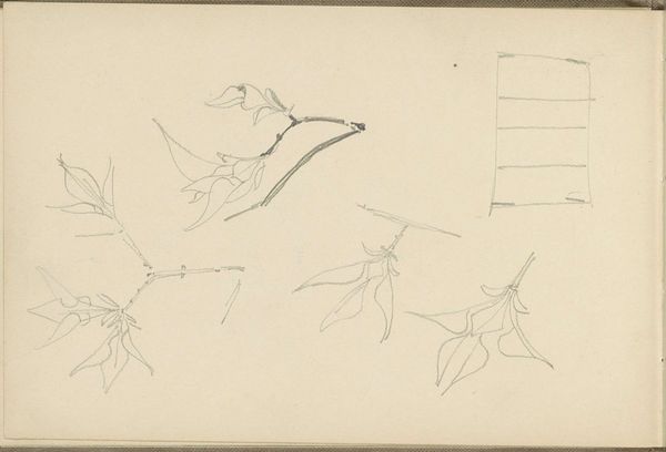 This is a drawing of leaves with smooth edges by Antoon Derkinderen. The sketched leaves invite us to delve into nature's symbolic language. The motif of leaves, deeply rooted in human consciousness, has been imbued with varied meanings across cultures. From ancient Greece, where laurel leaves symbolized victory and honor, to the Christian tradition where olive branches represented peace, the leaf embodies life, growth, and renewal. In Derkinderen's drawing, the delicate lines that form the leaves echo the fragility of existence and the transient nature of time. This echoes ancient art where the representation of flora was a reminder of the cyclical nature of life. The use of such symbols is an effort to tap into a collective memory, engaging the viewer on a subconscious level, evoking feelings of tranquility and introspection. Such motifs resurface time and again throughout history, evolving and adapting to different cultural contexts, yet retaining their fundamental connection to the human experience.
