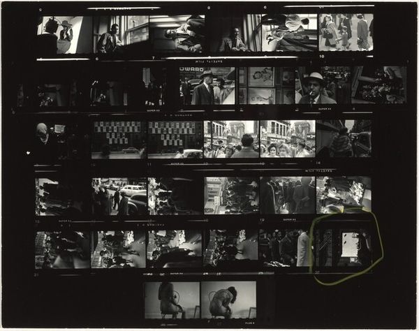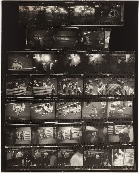 Robert Frank created this gelatin silver print, entitled "Circus--New York City I." The artwork gives insight into the artistry inherent in the photographic process itself. The contact sheet reveals a series of frames, each a moment captured and preserved using light-sensitive materials. This working method allows us to see the many stages of the darkroom process: the careful selection and arrangement of images that offer a glimpse into Frank's artistic decision-making. By retaining this artifact, Frank elevated what would normally be a mere step in the darkroom, into a medium for artistic expression. The contact sheet also subtly directs our attention to the labor-intensive processes that underpin photography, often unseen in the final product. It challenges the notion of the photograph as an unmediated snapshot, instead highlighting the photographer's hand in shaping the final image. The material choices, processes, and social context all add layers to our appreciation, blurring the lines between craft and fine art.