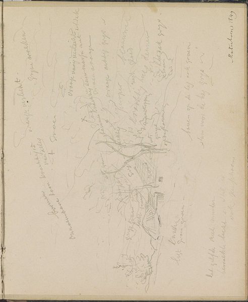 Johannes Tavenraat made this landscape drawing in the Netherlands, probably during the mid-19th century. The Romantic era of this time often saw a focus on nature, but Tavenraat gives us a landscape that feels incomplete, only sketched, perhaps implying a sense of nature’s overwhelming grandeur. In Dutch culture, landscape painting had long been a way to express national identity and pride, but by only hinting at a landscape, Tavenraat maybe questions the traditional ways of seeing and representing the world. During this period, institutions like the Rijksmuseum were being established, shaping artistic taste and historical narratives. Tavenraat, through his art, engages with these developments, hinting at a dialogue between tradition and modernity. Historians looking at this work might investigate travel journals, art criticism, or the records of artistic societies to understand the ways in which Tavenraat and his contemporaries were thinking about the relationship between art, nature, and national identity.