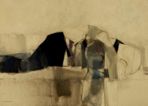 Curator: Shadi Ghadirian's photographic print, "Be Colourful," created in 2006, certainly makes a striking statement. What are your first thoughts on it? Editor: Immediately, I feel this… resistance. The figure’s partially obscured, pressing against a veiled boundary almost. The colour seems like a muffled scream. Is she trying to get out, or are we being kept out? Curator: Interesting. Let's delve into the materiality of that feeling. Ghadirian's background in photojournalism clearly informs her conceptual work here. Notice the layered textures – a palimpsest of painted surfaces merging with the subject. The image is made through the material. This blurring could reference both the literal walls within domestic spaces and those more generally constructed by societal roles for women. Editor: Yes, that makes sense. I see the domestic sphere suffocating her and yet there's something deeply powerful about the eyes that cut through it all. This "domestic sphere" seems constructed and imposed upon her— the woman's eyes staring out with an unwavering expression are not passive, but fiercely challenging the limits of these very conventions. Curator: Exactly. And the choice of photography itself becomes a critical tool. It allows Ghadirian to document, question, and ultimately, reconstruct the narrative around Iranian womanhood, which both recognizes and contests boundaries of the private/public divide in modern life. What’s produced becomes as important as why. Editor: Absolutely. It feels deeply personal and resonant. It's more than just a portrait; it's a feeling, an embodied experience caught on camera, wouldn’t you say? I keep coming back to her eyes. It transcends material constraint, as art is supposed to do! It's kind of exhilarating, in a melancholic way. Curator: The emotional impact definitely lingers, it pushes us to consider both how the art came to be, what materials were used and their inherent social weight. A poignant example of how artistic and societal conventions work, and are reworked in a very personal visual key. Editor: I agree wholeheartedly. It gives me chills, in the best way.