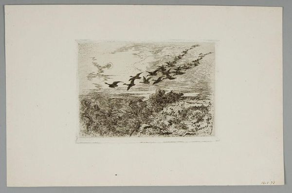 Curator: The raw, tempestuous energy here is almost palpable. It's unsettling and somewhat exciting. Editor: Indeed. We're looking at "Galeien tijdens een storm op zee," or "Galleys during a storm at sea," a sketch made by Stefano della Bella sometime between 1620 and 1664. Currently it is part of the Rijksmuseum collection. Curator: The composition is masterfully rendered despite being a simple sketch. The diagonal thrust of the ships against the swirling sky and water generates an incredible sense of dynamism. Editor: This sketch really embodies the anxiety and uncertainty of maritime life in the 17th century. Beyond a study of light and movement, one could suggest the scene speaks to the real dangers sailors and merchant mariners faced, particularly as the Dutch Republic consolidated its global trading power through dominance of the seas. Curator: The repetition of curved lines depicting the waves and clouds unifies the image, a formal echo chamber, you might say, yet the lack of precise detail, those loose lines, ironically heightens the drama. Editor: Exactly! This tension between the sketchiness of the execution and the imposing subject reflects the fragility of human ambition against the brute force of nature. Look at the scale of the boats compared to the waves; their journeys must have been rife with the daily awareness of impending peril. This was also a time of increasing conflict and war, so perhaps those dangers also refer to political and economic exploitation through naval power? Curator: That is a viable interpretation. Formally speaking, the limited tonal range emphasizes the contrast between light and shadow, further contributing to the overall feeling of dramatic chaos. Note how Bella balances the dark, ominous clouds with the foamy white crests of the waves. Editor: Viewing the work as a statement of historical, or even environmental risk adds layers of resonance for the contemporary listener, especially at a time when we think of global power shifting with increasing impact on the global climate. Curator: An unexpected, yet persuasive perspective to superimpose on Bella’s dynamic visual language, and what seems at first glance a simple, elegant study. Editor: Art truly reflects our history. Hopefully, this tour enables everyone to see and experience works of art within multiple diverse narratives.