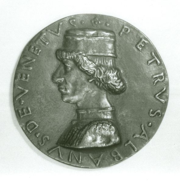 This is a bronze portrait medal of Maffei, Canon of Verona, made by Matteo de' Pasti in Italy around the mid-15th century. Portrait medals like this one emerged in the Renaissance, and they offer us insights into the social and intellectual currents of the time. Maffei's prominent role as a canon reflects the Church's influence in Italian society, particularly in shaping education, culture, and politics. The meticulous rendering of his features and clothing, combined with the Latin inscription, presents him as a figure of authority and learning. The very act of creating a medal elevates Maffei's status, aligning him with the classical tradition of honoring important figures. De' Pasti, as the artist, would have had to navigate the expectations of his patron while also showcasing his artistic skill. Understanding the context in which this medal was made requires historical research, looking at biographical details, and understanding the institutional history of the Church in Verona. Art is a product of its time, and its meaning is enriched by the social and cultural context.