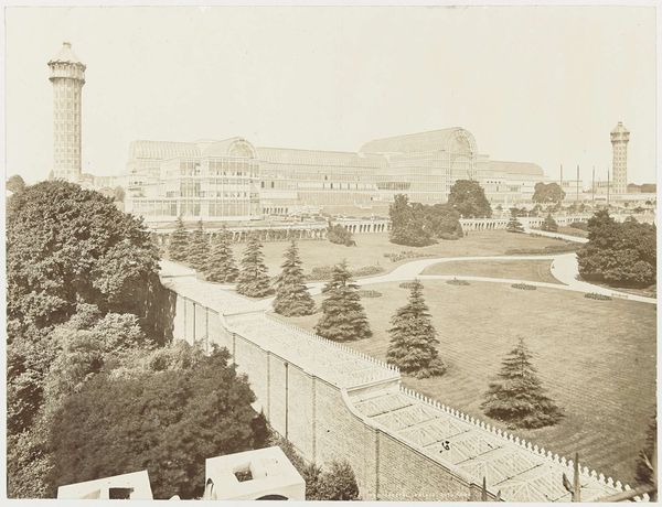 Curator: This is William Edward Dassonville's photographic print, "Portsmouth Square, San Francisco." It captures a familiar urban scene. What's your initial take? Editor: It's melancholic, almost ghostly. The buildings loom, and even the park feels a bit like a forgotten memory. There's a stillness that's unsettling. Curator: Indeed. Portsmouth Square holds significant cultural memory for San Francisco, being the city’s original plaza. The framing emphasizes nature and the built environment. Editor: The contrast feels intentional, like a visual representation of the tension between nature and human development, or perhaps the ephemeral nature of progress itself. Curator: Absolutely. The park embodies a kind of resilience. It's a green space amidst the concrete, a symbol of continuity within a constantly evolving urban landscape. Editor: I’m struck by the lack of people. It heightens the feeling of solitude and contemplation, inviting the viewer to reflect on the city's past and present. Maybe it's a warning, too. Curator: A warning or perhaps a quiet meditation. It’s a scene worth contemplating. Editor: Yes, a photographic urban poem.