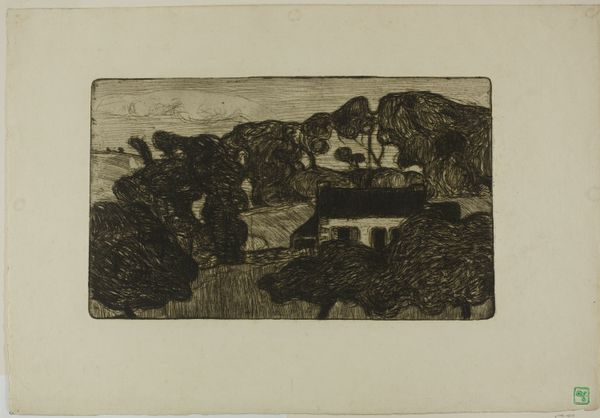 Editor: This engraving, called "The Sheep of this Pasture," is by Edward Calvert, its date is unknown, and it's rendered on paper. It strikes me as incredibly idyllic and pastoral, with its grazing sheep and sun setting over the little farm in the distance. What symbols and hidden meanings do you find woven into this scene? Curator: I see layers of symbolic meaning here, deeply rooted in Romantic ideals. Notice how the sheep are centrally located, peacefully grazing, emblems of innocence and pastoral harmony. This image evokes a sense of Eden, of untainted nature. But look closer – how does the composition reinforce this idea? Editor: Well, the strong horizontal lines, like the horizon, give it a balanced feel, and the detail in the sheep really draws the eye, holding our attention. Curator: Precisely. The sheep draw our eye, while the distant sun, nearly obscured, suggests a cyclical return, perhaps to a Golden Age. And what of the cottage? Does it represent mere shelter? Editor: Not just shelter, no. Maybe security? Home? It does feel quite nestled in the landscape. It almost appears as though it’s hiding or being protected. Curator: Yes, protected. Think of the cottage as representing the soul, safely integrated within the natural world, nurtured by it. Calvert suggests that genuine spiritual fulfillment arises through harmony with nature. He uses visual language here that invites contemplation and serenity. Editor: I never would have considered that a cottage and grazing sheep could be loaded with such symbolism, representing so much more. Thank you. Curator: My pleasure. It's a good reminder to look beyond the surface and see the deeper cultural longings artists often express through their imagery.