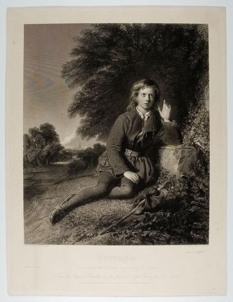 Curator: Before us is Joseph Wright of Derby’s oil painting, "Brooke Boothby," completed in 1781. It’s now held here at the Tate Modern. Editor: Right away, I’m struck by how intensely *chill* this guy is. Total languid elegance. Look at him sprawled out, mid-think, bathed in that sunset glow. I bet his dating profile would say something about "intellectual musings." Curator: It's a defining work of Romanticism. It presents Boothby, a known intellectual and writer, in an idealized state of melancholy, reflecting the period’s preoccupation with sentiment and the natural world. Consider the Enlightenment interest in science with the burgeoning aesthetic interest in emotions and drama. Editor: Melancholy, yes! There’s almost a Byronic vibe – all dark thoughts and brooding. The composition draws your eye right to his face, but then you notice the book under his hand, grounding him in reality even as the light sends him into some imagined place. But did anyone *really* recline like that for real? Looks wildly uncomfortable. Curator: That pose is quite intentional. It reflects the fashion for portraying individuals within carefully constructed pastoral settings. Wright consciously positioned Boothby against the backdrop of the natural world to signal his sensibilities. The book too speaks to the values of refined sensitivity and erudition among the landed gentry. Editor: It feels like we’re intruding on a very private moment. The darkening trees around him press in, and yet, he’s illuminated—gorgeous and a little ridiculous. It's like stumbling onto a theatrical performance staged just for the sunset. He practically *demands* to be painted. Curator: And, in a way, the painting fulfills the societal role of art during the late 18th century, emphasizing an individual's character and societal position but through a more personal, emotional lens. Editor: All in all, you leave with the sense that the artist *liked* the subject, no? It goes deeper than any stuffy commission – there’s fondness radiating from the brushstrokes. Curator: Indeed, Wright succeeds in painting more than just a portrait, instead conveying an aura that captured the aesthetic inclinations of an era, but also its emerging cult of personality. Editor: Absolutely, and isn't that what great portraits do? More than just record likeness, they somehow give us an inner landscape of another person’s mind, or even the echoes of an epoch itself.