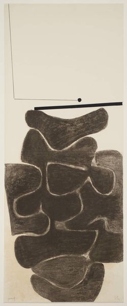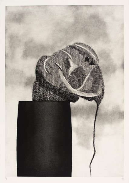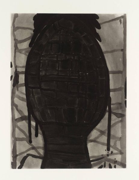 Curator: Terry Winters' "Field Note (9)" presents an intriguing form in black and grey. Its visual weight pulls the viewer's gaze downward. Editor: It does feel grounded, doesn’t it? I’m immediately drawn to how Winters handles the etching process, creating a layered effect. The texture looks almost like cracked earth. Curator: Winters often blends organic forms with abstract geometry. Here, the shapes remind me of cells or perhaps geological strata, reflecting systems in nature. Consider how his materials—the ink, the paper—intersect with this theme. Editor: And the stark contrast amplifies a sense of mystery. Winters exhibited widely, often challenging the established gallery system by introducing scientific imagery. What kind of audience was he trying to reach, showing such unusual, almost diagrammatic works? Curator: His work invites a new way to engage with materiality in artmaking. It pushes beyond traditional painting, using printmaking to explore complex systems and processes. Editor: It certainly makes you think about how scientific visualization seeps into our understanding and portrayal of the world. Curator: Precisely! And that interplay is essential to understanding Winter’s project. Editor: Definitely a piece to spend some time with, considering the cultural implications of rendering the invisible visible.
