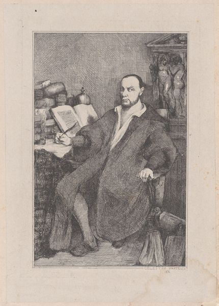 Otto Verhagen made this drawing of a man reading a newspaper while sitting on a chair with what looks like graphite and coloured pencil. The way he's worked the graphite on the man's coat and trousers gives the drawing a real sense of depth, using layer upon layer of mark making to give the impression of form. Looking at the newspaper itself, you can see how he's used the green pencil to give it a kind of weight. There's something about how Verhagen applies these colours that makes the whole scene feel very present and real, as if he's right there with the man, observing him. It feels a bit like some of Daumier's lithographs, where the everyday is made monumental through the artist's attention and focus. What do you think?