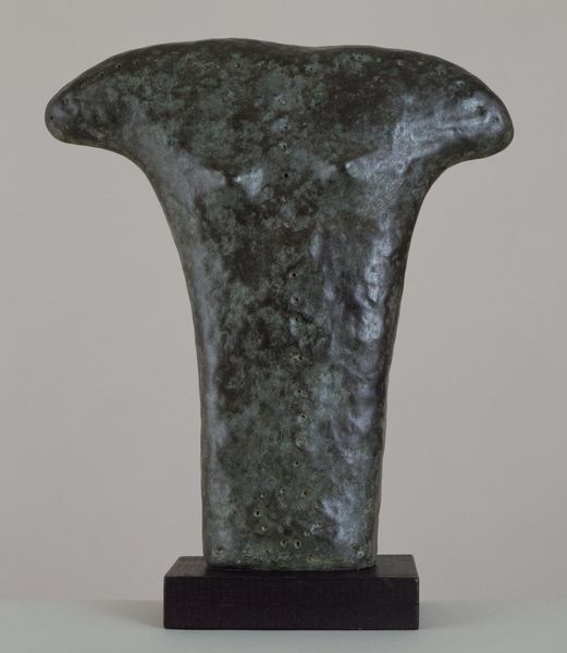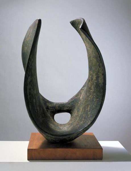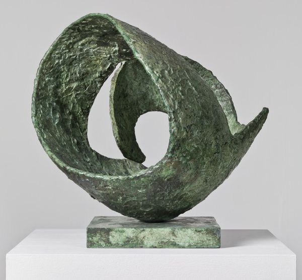 Porthmeor is a beach close to Hepworth’s studio in St Ives, Cornwall. A critic thought this sculpture ‘seems to belong to the living world of the sea.’ The curling top lip of the bronze is like a representation of a breaking wave while the green and white patina of the inner surface recalls the colour of the sea and surf. At Porthmeor, Hepworth observed the changing tide, the movement of sand and wind, and the footprints of people and birds. For her, the rhythm of the tides was part of a natural order to which humankind also belongs. Gallery label, September 2016