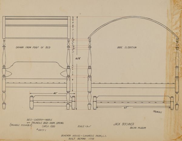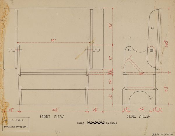 This drawing of a chair was made on April 27th, 1936, by Robert Brigadier. It's all careful lines and measurements, a real exercise in precision. It’s almost as if Brigadier isn't just drawing a chair, but dissecting it, showing us every angle and dimension. Look closely at the front legs, how the carving becomes more ornate closer to the seat. This meticulousness speaks to the kind of attention and care that goes into making, it's a world away from throwing paint at a canvas. There’s something about the calmness of the drawing that makes me think of Agnes Martin, the same quiet determination to make something absolutely perfect. I guess what I'm saying is that there's more than one way to make art, and even the humblest sketch can be a window into a different way of seeing. It makes you wonder about all the thought that goes into making even the most ordinary things, when they are carefully planned.