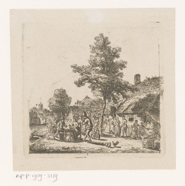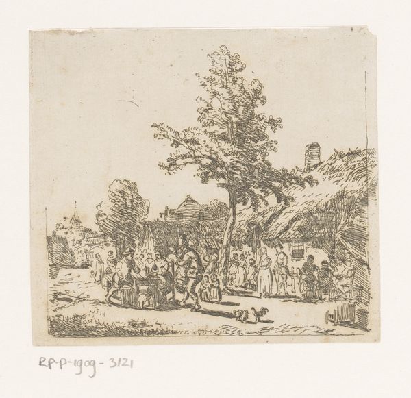 Florent Nicolas Crabeels created this detailed village scene with etching. Notice how Crabeels structures the composition using line and form to convey a bustling village life. The convergence of lines draws your eye from the foreground figures towards the church spire in the distance, creating a sense of depth. Crabeels' masterful use of hatching and cross-hatching builds texture and dimension, animating the buildings, trees, and figures, giving the etching a vibrant, almost palpable quality. This piece can be seen as a visual text reflecting broader concerns with capturing fleeting moments and the everyday experiences of modernity. It invites us to contemplate the intricate relationship between the artist, the subject, and the evolving modes of representation during the 19th century.