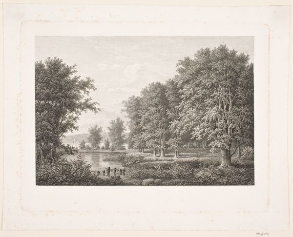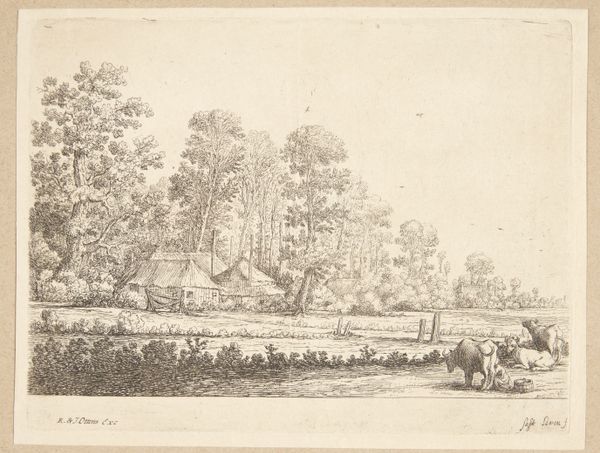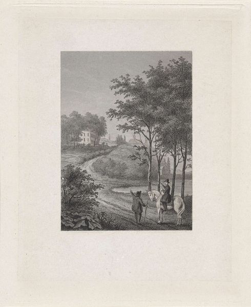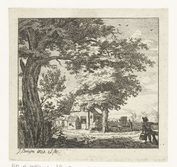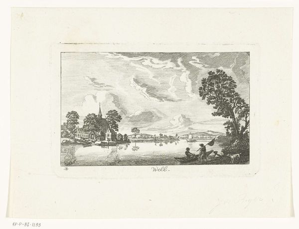 Editor: This print, "Figuren vervoeren manden met fruit over een rivier," or "Figures Transporting Baskets of Fruit over a River," was created in 1807 by Izaak Jansz. de Wit. It's an engraving, which gives it this delicate, almost dreamlike quality. It reminds me of a simpler time, but there's also a feeling of labor embedded within it. What catches your eye in this piece? Curator: The landscape itself speaks volumes, doesn't it? The way the figures are integrated reveals a certain rhythm of life. Look at the title inscribed along the bottom, “Herfstmaand,” Dutch for the month of Autumn; we aren’t just looking at labor but seasonal cycles that hold so much symbolic meaning through time. Editor: Seasonal cycles, that’s interesting. How so? Curator: Well, autumn has been historically tied to harvest and preparation, both for the coming winter but also in a more figurative sense, toward the inevitable ending of things. What are the emotional cues present in that image for you? Does that harvest symbolism feel sad or comforting to you? Editor: I think a little of both? It’s calming, seeing this traditional way of life depicted, but there is something bittersweet about it knowing how much things have changed. It’s also pretty neat to consider all this loaded into an image that appears simple at first glance. Curator: Exactly. It’s through these simple, enduring images that cultural memory persists, even if unconsciously. Next time you think about it, ask yourself how modern landscapes echo the sentiments. It's all connected, if you have eyes to see. Editor: Definitely. I’ll never look at an autumn scene the same way again!