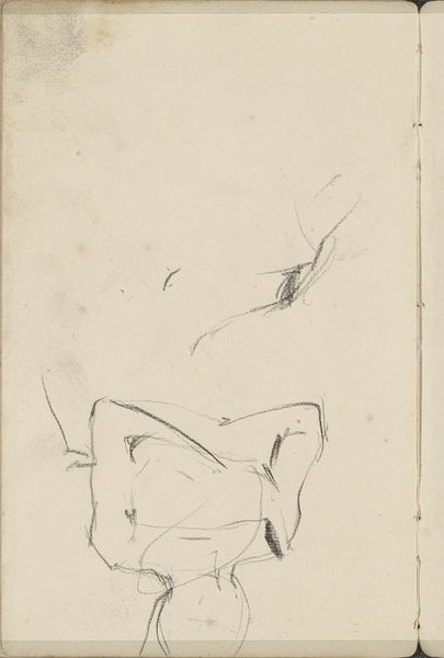 Editor: This is a pencil drawing titled "Reclining Figure with Arms Extended Over Head, Knees Bent," attributed to Mark Rothko. The figure, a nude, is rendered in quick, expressive lines. It feels almost… vulnerable, but also defiant, with the arms raised like that. How do you interpret this work? Curator: It’s interesting you pick up on the tension between vulnerability and defiance. Considering Rothko’s later abstract expressionist work, this early figurative piece allows us to trace his engagement with the body and its expressive potential within the academic tradition and how that eventually unravels. Think about whose bodies have historically been represented, and how. Editor: You mean, like the power dynamics of the male gaze? Curator: Precisely! This drawing might seem like a traditional nude study, but notice how the lines are less about idealized beauty and more about raw emotion. Are we looking at a body at rest or in distress? And what does it mean for Rothko, an artist later associated with pure abstraction, to grapple with the figure in this way? How does it speak to questions of identity, perhaps even his own? Editor: So you’re saying this early work reveals Rothko's struggle with representing identity, even before his abstract period? It's almost like he’s wrestling with the expectations of representation. Curator: Exactly. Perhaps the ambiguity is intentional. The sketch, rather than offering a defined image, holds space for viewers to engage with broader discussions on the body, representation, and emotional expression. What does it evoke in you now? Editor: It makes me think about the politics of the body, even in its simplest form. It also made me aware that maybe abstract is not detached from reality, on the contrary... Curator: Agreed, it's all connected! These early pieces, in their raw expressiveness, offer vital context for understanding Rothko's evolution.