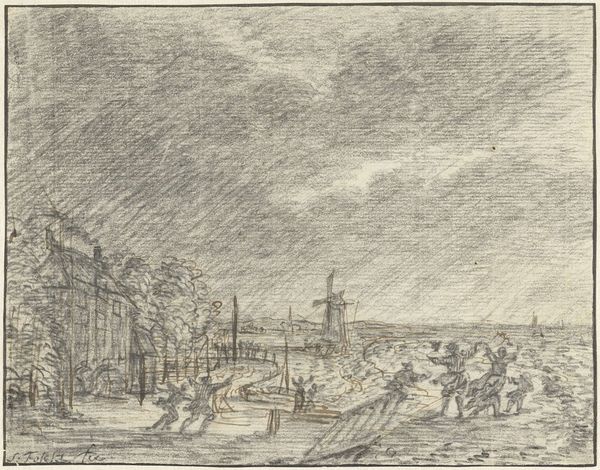Simon Fokke's 1761 drawing captures the Raampoort fire in Amsterdam. The towering windmill, usually a symbol of prosperity, is now dwarfed by flames, embodying destruction. Fire, a potent symbol, has coursed through human consciousness since antiquity. From the hearths of ancient civilizations to the infernos of war, its duality fascinates—creation and destruction, warmth and terror. Here, the fire recalls the burning of Troy, or the volcanic eruptions described in antiquity. Its uncontrollable nature mirrors humanity’s struggle against chaos. The collective memory of such disasters evokes primal fears and a sense of helplessness, compelling us to witness and remember. Even in its depiction, the psychological impact of the fire is undeniable, reminding us of our precarious existence, caught between progress and the ever-present threat of devastation. This image is a stark reminder that history, like fire, is ever-present, shaping our perceptions.