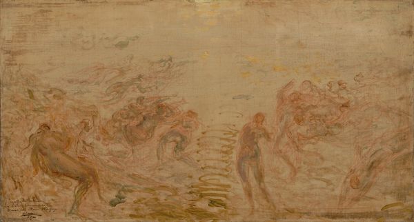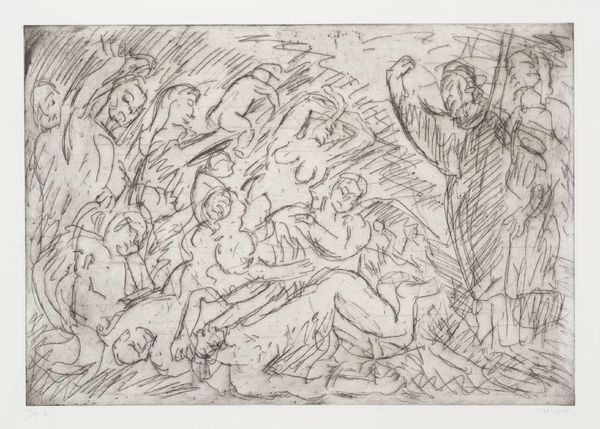 James Ensor’s “The Miraculous Draught of Fishes” presents a scene rendered in delicate yet agitated colored pencil strokes. Dominated by hues of orange and blue, the composition depicts a biblical narrative infused with Ensor’s characteristic flair for the grotesque and the surreal. The piece is structured around a visual dichotomy: above, a serene depiction of Christ and his disciples in boats; below, a chaotic tangle of figures amidst an abundant catch of fish. Ensor employs a network of hatching and cross-hatching to create a sense of depth and movement, particularly in the turbulent waters teeming with marine life and human forms. The rough texture of the colored pencil lends a raw, unfiltered quality to the image. Ensor’s choice of color and line destabilizes traditional representations of religious scenes. The effect is jarring, disrupting the conventional harmony. The formal tensions within "The Miraculous Draught of Fishes" challenge viewers to reconsider the boundaries between the sacred and the profane, the beautiful and the grotesque, inviting a re-evaluation of established artistic and philosophical norms.
